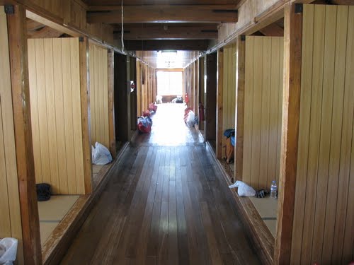 自分たちが泊まった2号館3階の様子。2畳ごとに区切られたスペースがずらり。