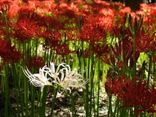 Lycoris radiata (Manjushage, Higanbana) and Lycoris albiflora (Shirobana Higanbana).